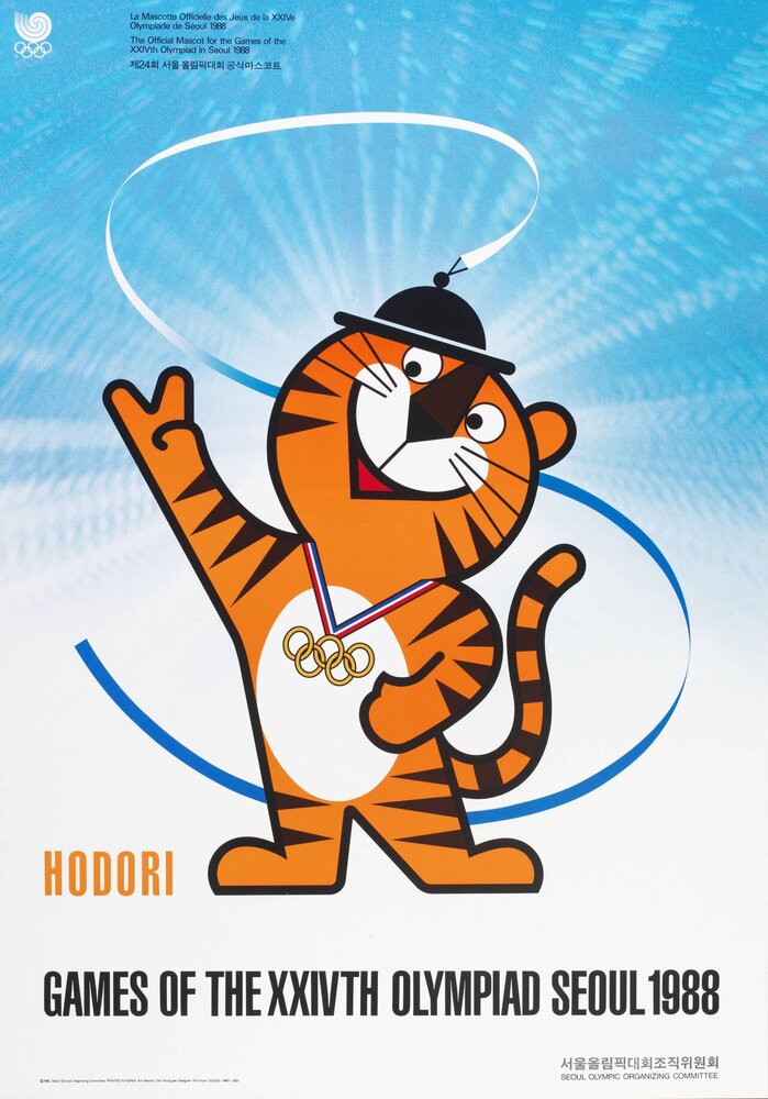 Kim Hyun tarafından tasarlanan 1988 Seul Olimpiyatları’nın resmi amblemi Hodori’nin posteri