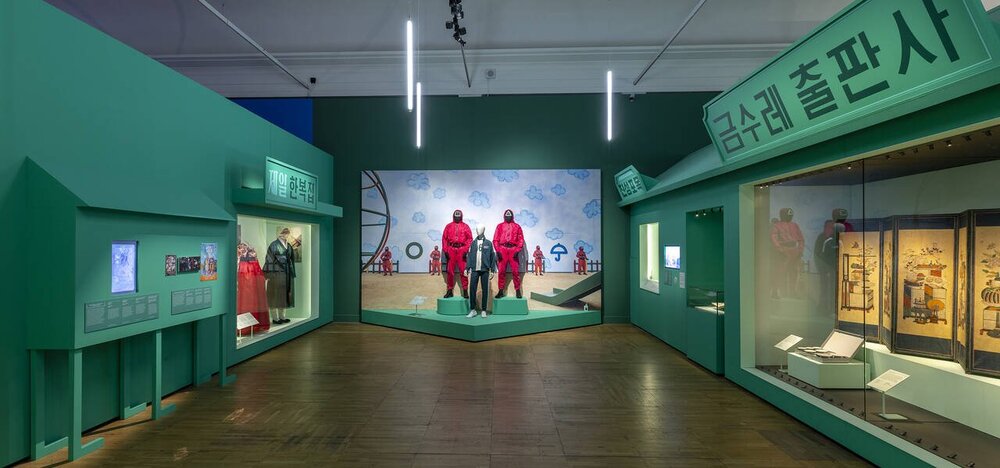 Küratörlüğünü Rosalie Kim üstlendiği sergide Güney Kore’nin tarihinden fotoğraflar, posterler ve arşiv materyalleri ile MP3 oynatıcı gibi ülkenin ürettiği ilk elektronik ekipmanların prototiplerinin yanı sıra Squid Game’in ikonik pembe-yeşil eşofmanları ile Parasite filmindeki banyo setinin rekreasyonu da yer alıyor.