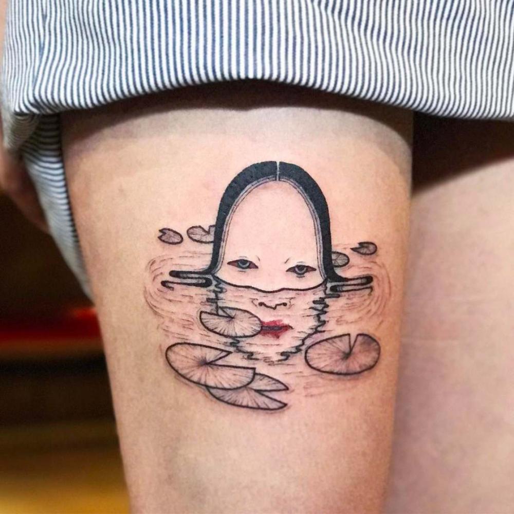 Güney Koreli dövme sanatçısı Suzani, Junji Ito’nun yazdığı ve çizdiği ünlü Japon korku mangası karakteri Tomie’den esinlenen dövme figürleri çiziyor.