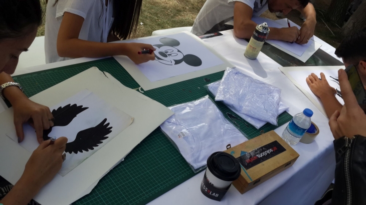 Sokak sanatları olarak anabileceğimiz kültürler arasında şablon (stencil) kesmek de yer alıyor. Herhangi bir görsel kesilebilir hale getiriliyor. Sonraki adımda dijital dünyadan fiziksel dünyaya adım atılıyor. Elimizdeki bu kağıttaki siyah alanları keserek çıkardığımızda ise işin zor kısmını geride bırakıyoruz. Bu boş alanları bir zemin üzerine boyayarak fiziksel dünyada kalıcı hale gelmiş oluyoruz.