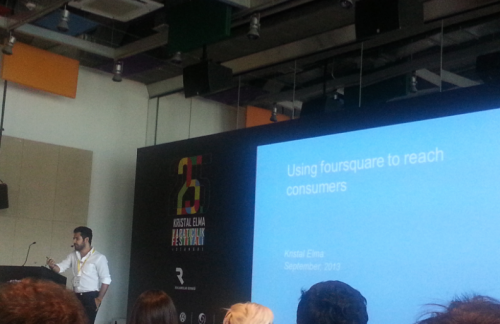 Foursquare Avrupa direktörü Omid Ashtari Foursquare’in müşteriye ulaşmak adına sunduğu olanaklardan bahsetti. Detaylara başlamadan seminerde en çok konuşulan noktanın Türkiye’nin Foursquare için en büyük 2.pazar olması olduğunu belirtelim. Foursquare’in Türkiye’ye duyduğu sevgi de seminer boyunca sık sık konu oldu. İlk olarak siteyle ilgili istatistiklerden sonra üç önemli faktörün siteye yarattığı güzelliklerden bahsedildi. Günlük olarak milyonlarca check-in almasıyla oluşan “popülerite” sitenin sürekli olarak evrilen gerçek zamanlı sinyal almasını sağlıyor. “Kullanıcıların bağlılığı” sayesinde hangi mekanlarda sıklıkla bulunduklarını biliyor ve de sıklıkla ziyaret edilenlerle tek seferlik gidilenlerin ayrımı yapılabiliyorlar. Bir mekanın kapandığının ya da yenisinin açıldığının bilgisini yine kullanıcılar sayesinde bilip böylece “yenilikler”den de geri kalmıyorlar.