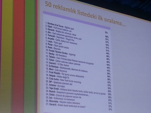 Bu 50 reklamlık listenin ilk sıralaması aşağıdaki şekilde çıkmış.
