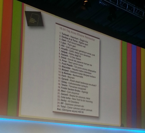 – Halkın ve reklamcıların arasında bir oylama yapılmış. Türkiye genelinde toplamda 500 kişiyle (18-24 yaş aralığında 50 kişi, 25 yaş üstünde 450 kişi) görüşülmüş. Reklamcılardan da 301 kişiyle görüşülmüş, bu isimlerin olduğu liste MediaCat tarafından da paylaşılmış. Tüketiciler ve reklamcılar söz konusu 50 reklam arasından herhangi bir kısıtlama olmadan beğendikleri tüm reklamları seçmiş.