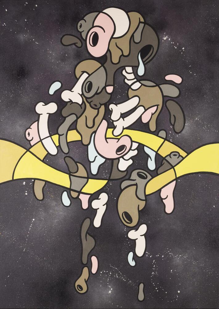 Aslında formlarım bambaşka bir canlı türüne ait gibi. Kimi zaman daha belirgin bir insana dönüşebiliyor kimi zaman bir hayvana, kimi zaman ise kendi halinde kalıyor. Yine de onları bir figür gibi algılayıp bir hikayenin içine oturtmak mümkün olabiliyor veya tamamen soyut bir kompozisyon olarak da karşımıza çıkabiliyor. Bu durum benim o formlarla farklı şekilde oynamamı kolaylaştırıyor.