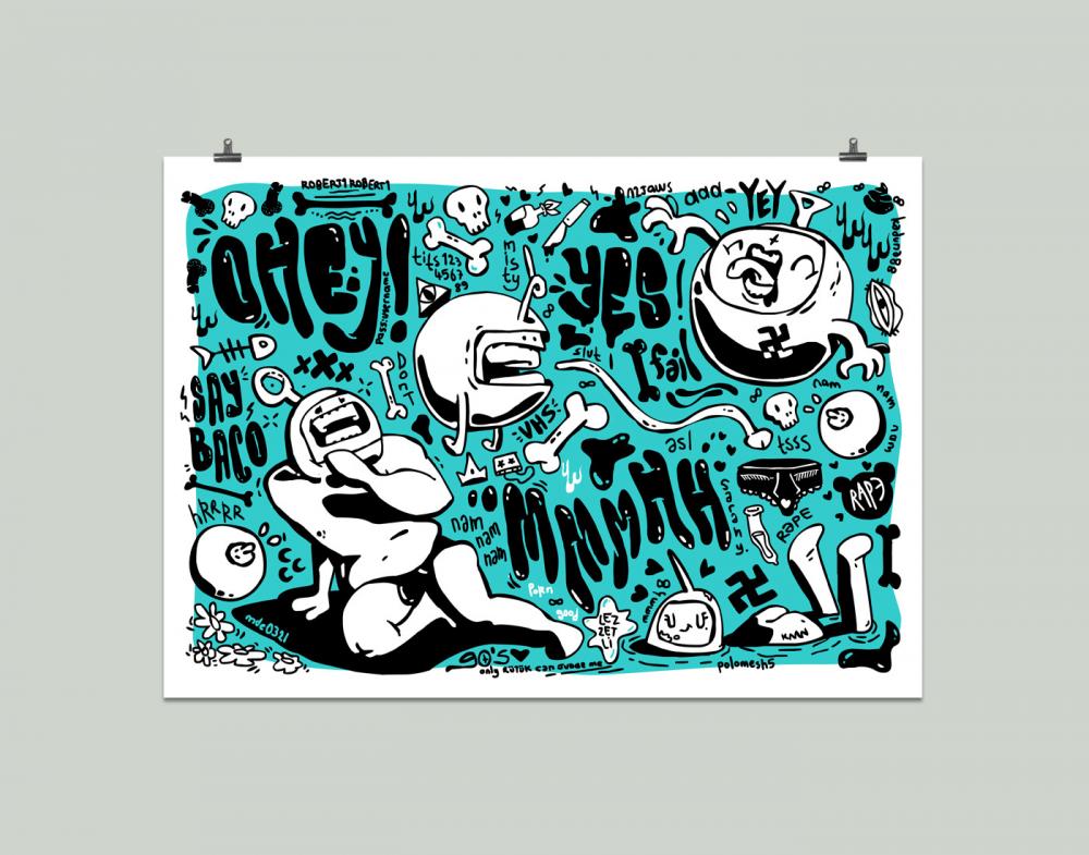 Posterin tasarımında da One Punch Man’in açılış jeneriğinde uzaklarda bağıran bir karakter vardı. Ondan esinlendim ama son halinin ordaki tiple hiç bir alakası kalmadı.