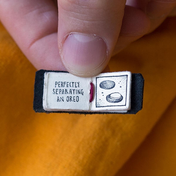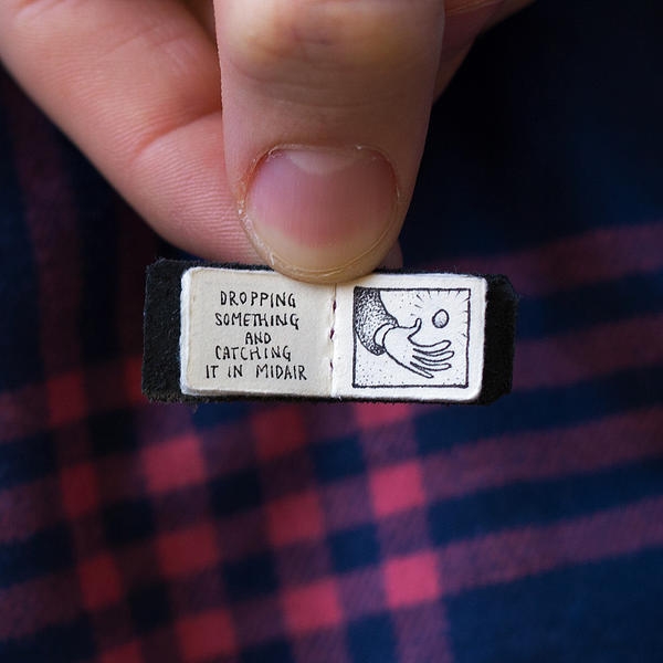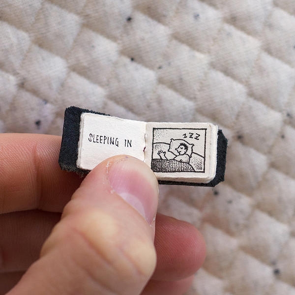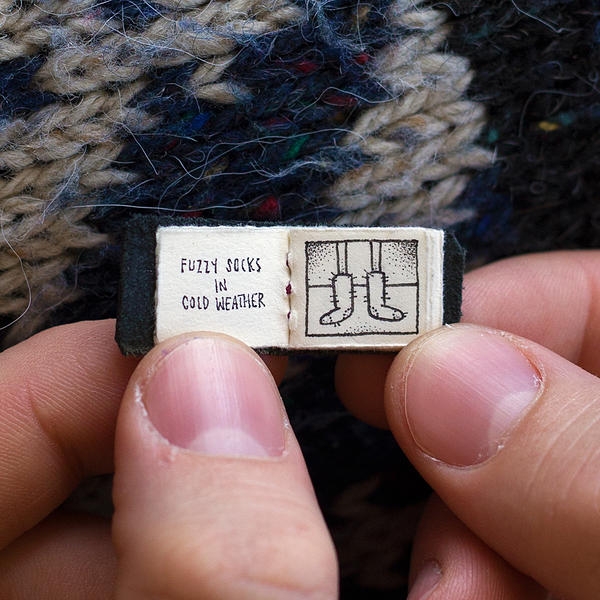 Denverlı illüstratör Evan Lorenzen, bir parmak ucu büyüklüğündeki “Life’s Little Pleasures Volume Two” (Hayattan Küçük Zevkler Cilt 2) isimli kitabında insanı günlük hayatta mutlu eden şeyleri, minik mutlu anları hatırlatıyor: Kamp ateşi, Oreo’yu kusursuz bir şekilde ortadan bölmek, soğuk havada giyilen yünlü çoraplar, baloncuklar…. gibi.