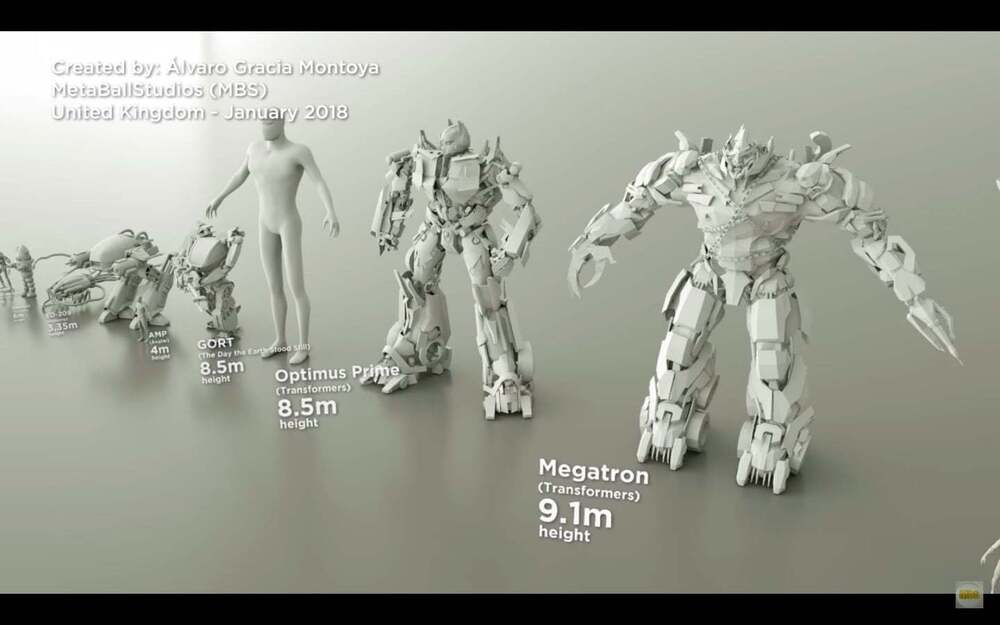 MetaBallStudios’un daha evvelinde canavarları sıraladığı videosundan sizlere bahsetmiştik. İspanyol YouTube kanalı sadece canavarları boy sırasına tabi tutmuyor ama. Bunun yanı sıra başka birçok ölçülebilir değeri de aynı şekilde videolara dönüştürüyor. Şimdi anlatacağımız videoda da yazının girizgahının anlayacağınız üzere robotlar boyunun ölçüsünü alıyor.