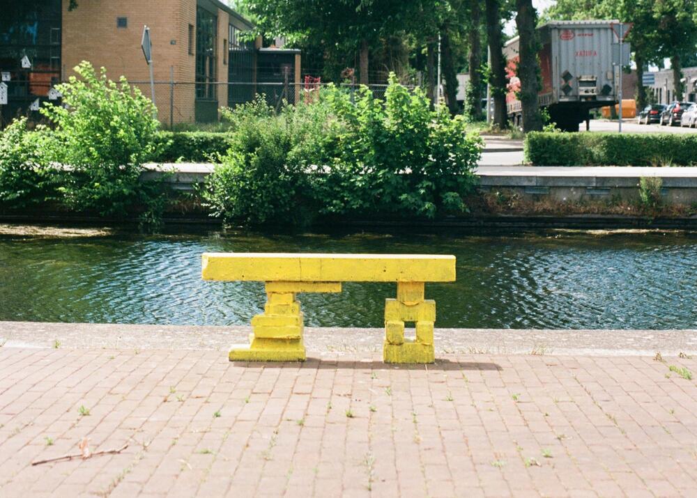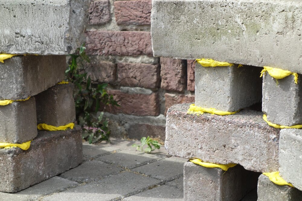 İkili; taş blokların ve beton bordürlerin ham estetiğini koruyor ve yüceltiyor. Hiper organize kamusal çevreyle tezat oluşturan bir görsel dille kırık parçaları yeniden birleştiriyor. Canlı renkteki tutkal, tasarımcıların parçalara imzasını ekleyen küçük bir detay.