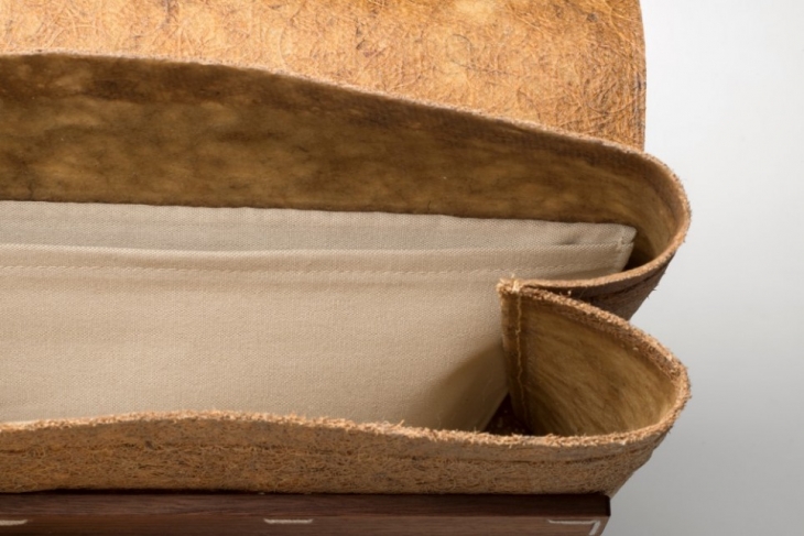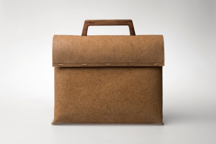 Çantanın dış yüzeyindeki malzeme, sert ve suya dayanıklı olan hindistan cevizi kabuğunun lifleri ve doğal reçinenin birlikte preslenmesiyle elde edilmiş. Çantanın su geçirmez özellik kazanması için güneşte kurutulmuş kauçuk kullanılmış. Geleneksel sanayi ürünü kauçuk toprakta ayrışmazken güneşte kurutma yöntemiyle üretilenler tamamen ayrışabiliyor. Sap ve toka kısmıysa, FSC sertifikası ile sürdürülebilir yollarla elde edilmiş ceviz ahşaptan elde edilen malzemeyle yapılmış ve suya dayanıklı olması için balmumuyla cilalanmış. Son olarak parçalar; işleme ve üretim sürecinde daha az su ihtiyacı yaratarak, geleneksel ipliklerden daha sürdürülebilir olan odun hamurundan elde edilen ipliklerle dikilmiş.
