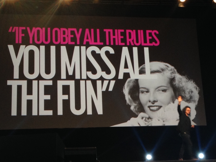 Ve tabii ki kültürü, kod dünyasını ve her şeyden önce insan davranışlarını değiştirmek için, yıkıcı yaratıcılığın açığa çıkması için ilham verecek sözleri Katharine Hepburn‘den ödünç alıyor; “Eğer tüm kurallara uyarsanız, tüm eğlenceyi kaçırırsınız.”