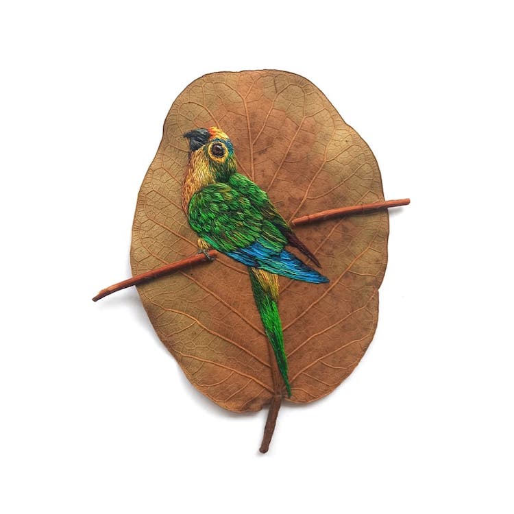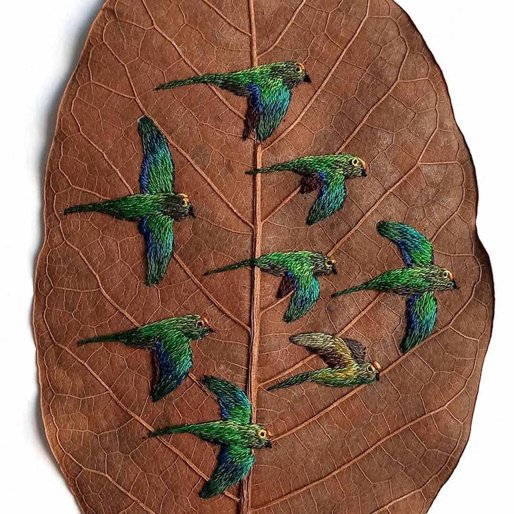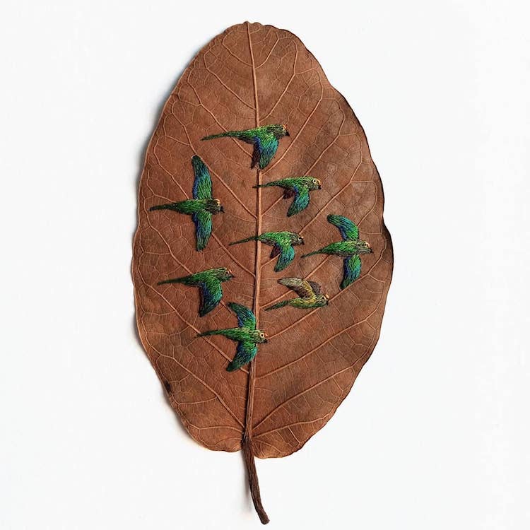İspanyol sanatçı, harika sanat eserleri için pahalı malzemelere ihtiyaç duymuyor. Dökülen kuru yaprakları toplayarak, bunların üzerine gerçekçi kuş tasvirleri işlemeyi seviyor. Genelde de papağan ve tukan gibi egzotik kuşları işlemeyi tercih ediyor.