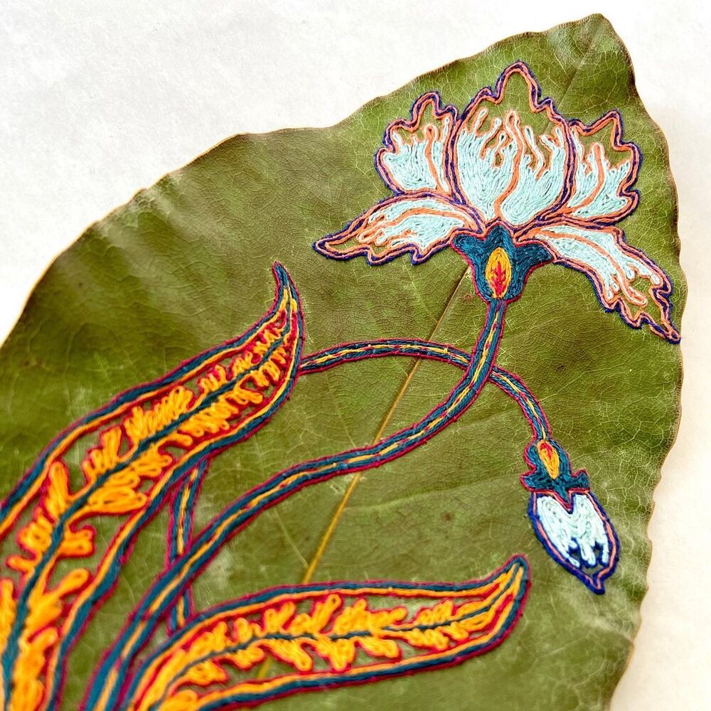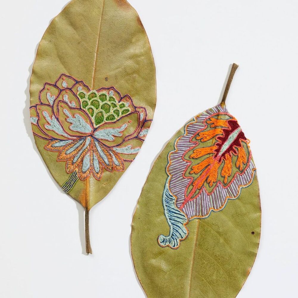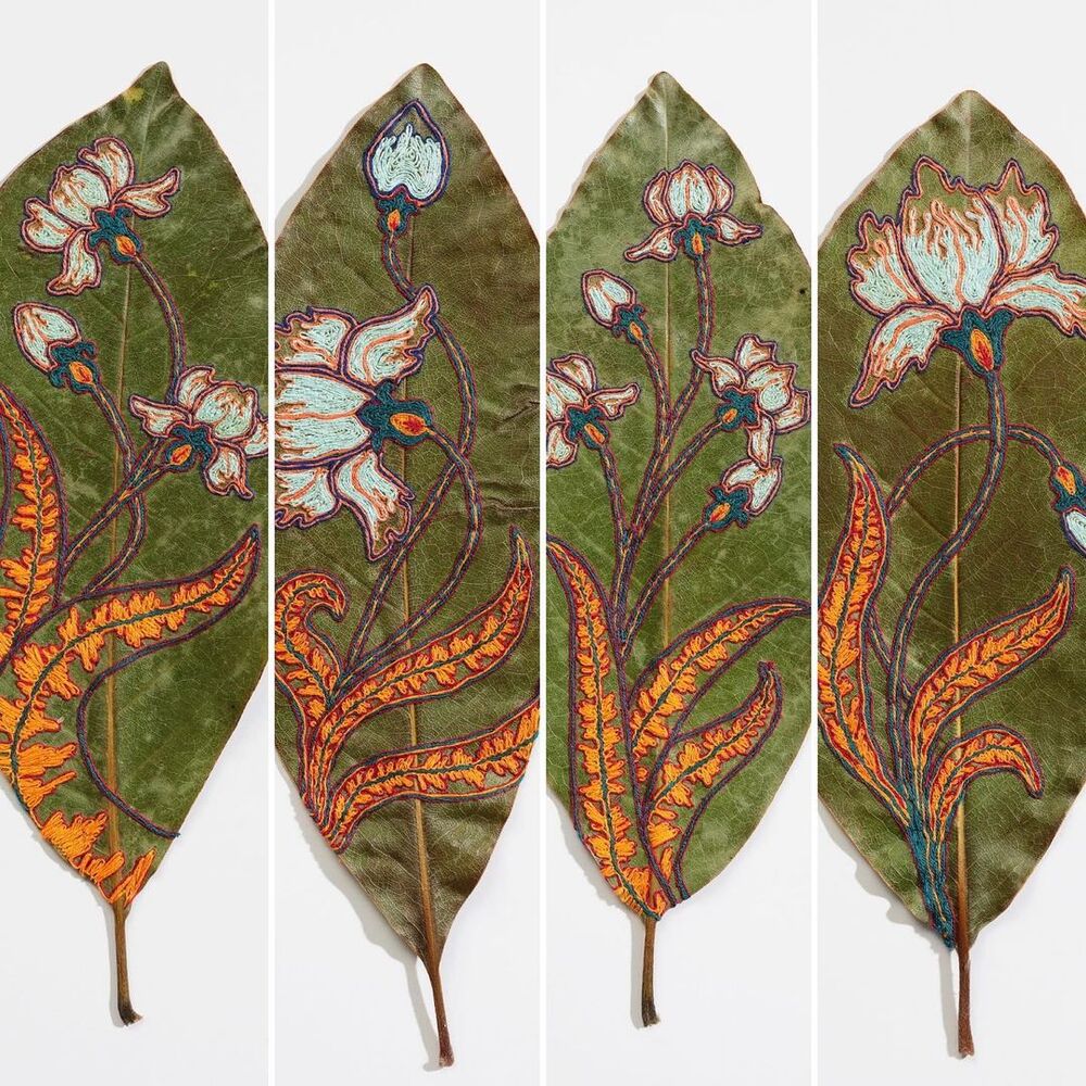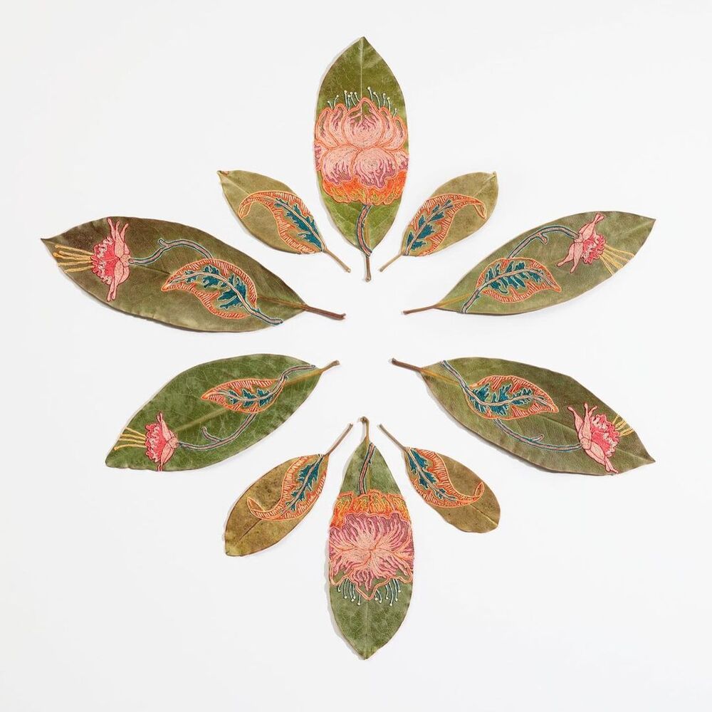 Sanatçı Hillary Waters Fayle hayranlık uyandıran yaprak sanatı işleriyle biliniyor. Geleneksel teknikleri doğada bol ve çeşitli yapılarda olan yaprak malzemesiyle birleştiren sanatçı özenle seçip kuruttuğu yaprakları ince ince işliyor veya ipliklerle üzerlerine işlemeler yapıyor. Hillary Waters Fayle hakkında daha öncelerde yazdığımız haberlerde sanatçının yapmış olduğu işlere değinmiştik. Yaprakları ince ince keserek ya da onları birbirine dikerek detaylı desenler ortaya çıkaran Fayle son dönemlerde yaprakların üzerine nakış işliyor.