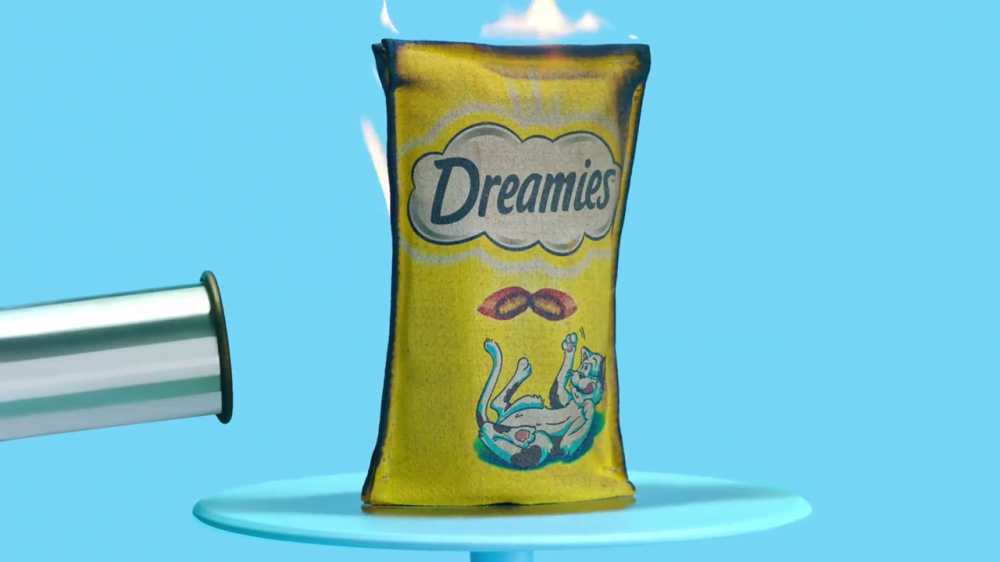 Mars Petcare ve reklam ajansı Adam § Eve DDB, daha önce Temptations isimli kedi ödülünün lezzetini anlatmak için ısırılmış, parçalanmış ambalajları bir açık hava kampanyasında kullanmıştı. Zira kedi sahiplerinin gayet iyi bileceği gibi, lezzetli mamalar evde bir yerlerde ise, kedimiz mutlaka onları bulacak ve açacaktır. İşte bu sorunla başa çıkmak amacıyla bu sefer de Dreamies isimli kedi ödülü için bambaşka bir iş yapılmış ve kedilerin asla açamayacağı bir ambalaj tasarlanmış.