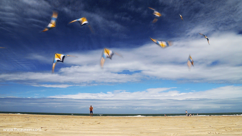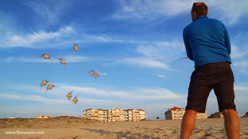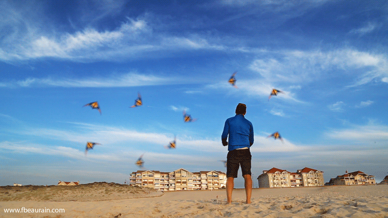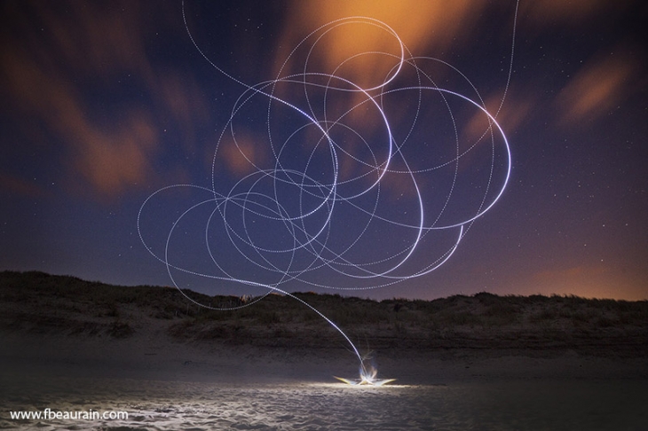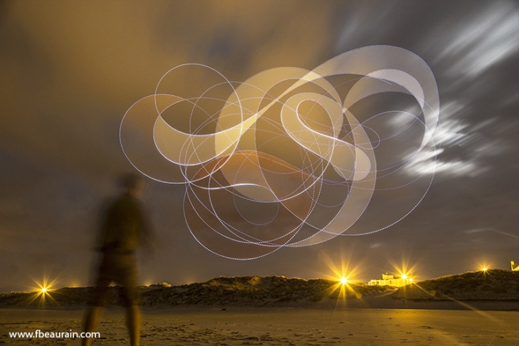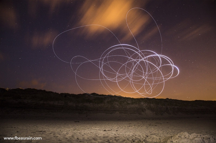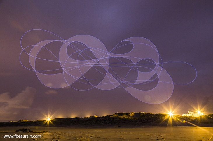 Spaxels gökyüzüne drone kullanarak anlamlı şekiller yapıyor. Fransız sanatçı Francois Beaurain ise fırça olarak kendine uçurtmaları seçiyor. Aynı şekli takip eden hareketlerle fotoğafçılıktaki time-lapse tekniğini kullanarak sinemagraf gif’ler ve fotoğraflar üretiyor. İki farklı yöntemi kullanarak uçurtmalarını hem LED’lerle hem de uzun pozlama yaparak çektiği fotoğraflarla destekleyerek projesine yön veriyor.