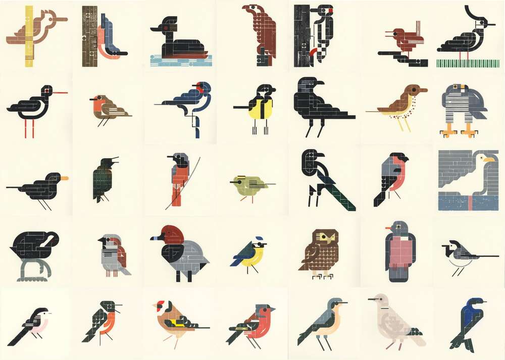 Scholten LEGO ile baskı tekniğinden hala vazgeçebilmiş değil. 50 Birds başlıklı projesi kapsamında, Hilversum’daki stüdyosunda Hollanda’da bulunan düzinelerce kuşu LEGO kalıplarla basıyor. 6 x 6 inçlik (15,24 x 15,24 cm) baskılar; blokları ustaca düzenlemeyi gerektiriyor. Blokların birleşme yerlerinin yarattığı küçük beyaz çizgilerse bu tekniğe has karakteristik bir hava katıyor.