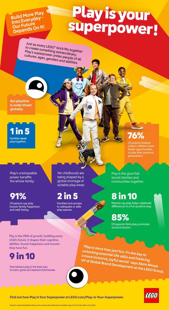 Dijital cihazlarımızla olan sıkı bağlarımız, artan ekran süreleri ve gündelik yaşamın her geçen gün artan temposu derken artık çok az ebeveyn, çocukları ile kaliteli zaman geçirme fırsatı bulabiliyor. Halının üzerinde oturup basit ama eğlenceli hikayelerle kurgulanan oyunların çocuk gelişimi konusundaki etkisi bilinmesine rağmen istatistikler ebeveynlerin %20’si çocuklarıyla hiç oyun oynamadığını dile getiriyor. İşte bu eksiklikten yola çıkan LEGO, globalde başlattığı Play Is Your Superpower (Oyun Senin Süper Gücün) kampanyası ile büyüklere oyun oynamanın gücünü hatırlamak istiyor.