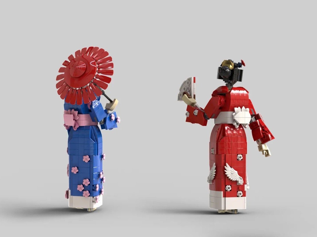 LEGO Ideas platformunda şu ana kadar 8.000’i aşkın oy alan bu özgün çalışma, tasarımcının ilk denemesi olmasına rağmen büyük ilgi görmüş. Modelde, geleneksel Japon kıyafetleri giymiş iki kadın figürü yer alıyor. Yüzleri olmayan figürler, muhteşem detaylara sahip kimonoları taşıyan birer bir manken gibi konumlandırılmış.
