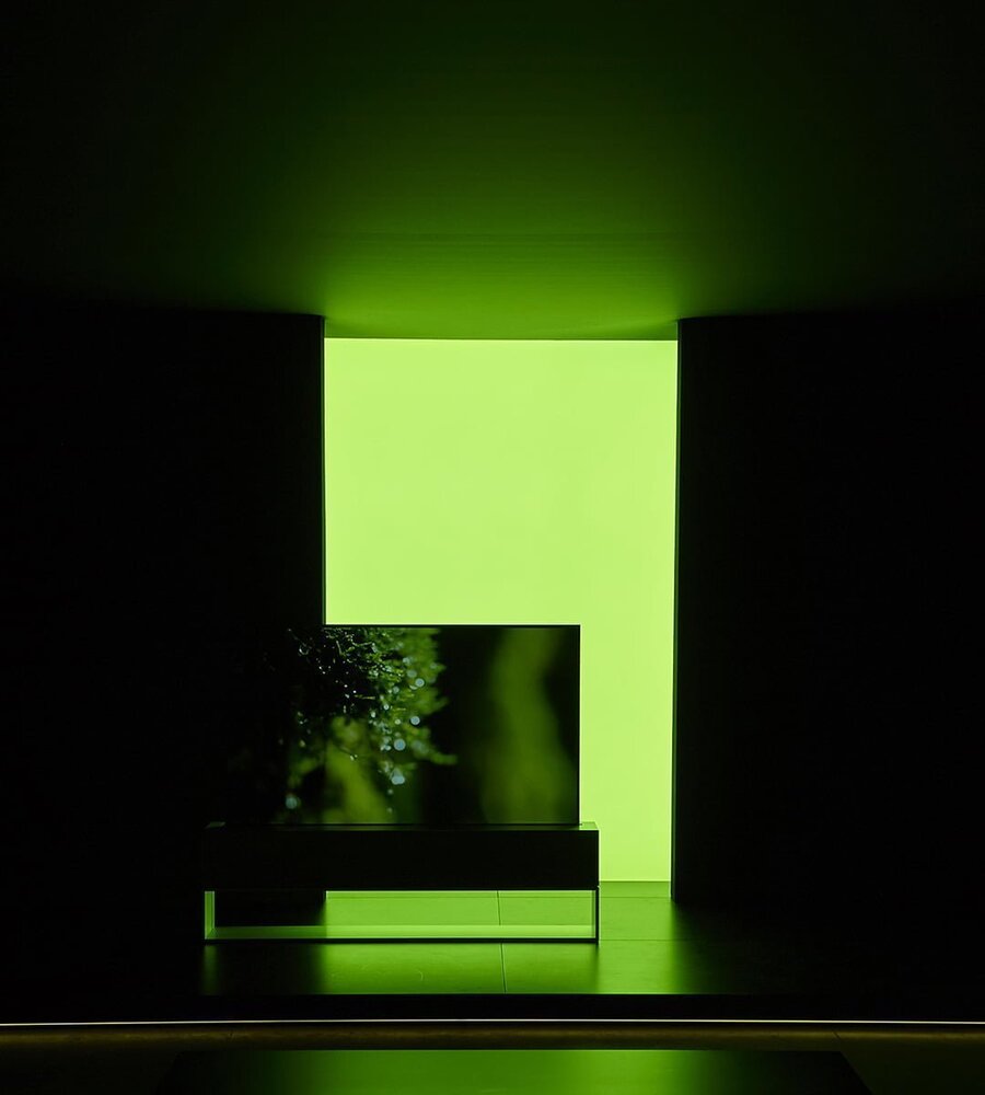 Milano Tasarım Haftası’ndaki Redefining Space adlı yerleştirmede fütüristik LG Signature OLED TV R estetik yanları ön plana çıkarıldı. Televizyonun tamamen açıldığında gözüken geniş ekranı sinama etkisi yaşatırken kıvrılıp kutusunun içine girdiğinde minimalist sanat objesine dönüşüyor. OLED ekranın sağladığı kontrast ve doğal renkler dışında Dolby Atmos’un gerçekçi sesiyle birlikte görsel ve işitsel bütünlük sağlanıyor.