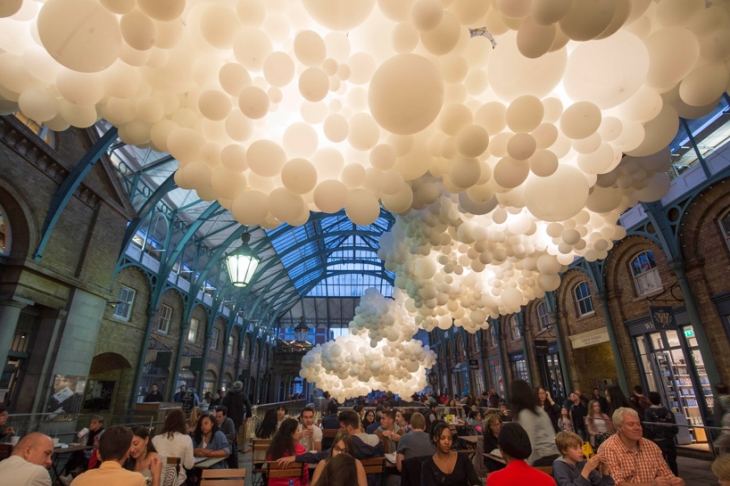 Fransız sanatçı Charles Pétillon kamuya açık oyun alanı, orman, ev ve farklı mimari yapıları bembeyaz bulutlarla istila etmesiyle biliniyor. Bembeyaz bulutlardan devasa yerleştirmeler hazırlayan sanatçının son mecrası Londra’daki Convent Garden bölgesindeki tarihi market binası oldu.