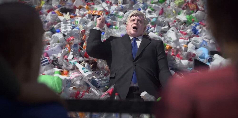 İngiltere’deki plastik atık ihracatının yıkıcı etkilerini vurgulamak isteyen Greenpeace UK, ülkenin denizaşırı ülkelere ihraç ettiği büyük miktardaki atığın boyutlarını vurgulamak için Wasteminster: A Downing Street Disaster başlığıyla bir film yayınladı. Londra’daki Başbakanlık ofisinin bulunduğu bölgenin kullanıldığı animasyonda İngiltere Başbakanı Boris Johnson plastik atıklar konusunda attıkları adımlardan bahsediyor. Ulusu ve gezegeni koruduklarına vurgu yapıyor. Bu sırada gökyüzünden plastik atıklar yağmaya başlıyor. Boris Johnson konuşmasına devam ederken atıklar ofisin bulunduğu tüm çevreyi dolduruyor. Filmin sonunda İngiltere’nin her gün ihraç ettiği çöp miktarının boyutları ortaya çıkıyor. Uydu ve fotoğraflar kullanılarak bölgenin dijital bir kopyasını oluşturan ekip, 1,8 milyon kilogramlık plastiğin dinamik akışını oluşturmak için de CGI ve modelleme yapıyor.