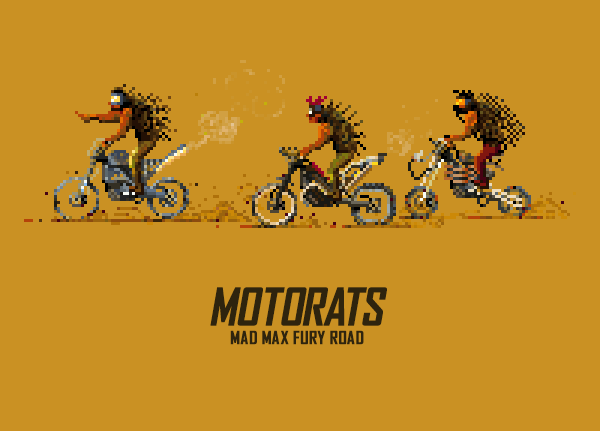 Evgeniy Yudin ve daha önce Bigumigu’da minimalist egzersiz GIF’leriyle yer verdiğimiz Misha Petrick de filmin bu heyecanıyla üretim yapan iki isim. Yudin’in illüstrasyonlarıyla piksel sanatının dünyasına geçen araçlar, Petrick’in animasyonlarıyla GIF’e dönüşüyor. Ortaya ise retro dünyanın döngüde kalan görselleri çıkıyor. Tabii en uçuk tasarımlarıyla Mad Max: Fury Road araçları fark yaratıyor.