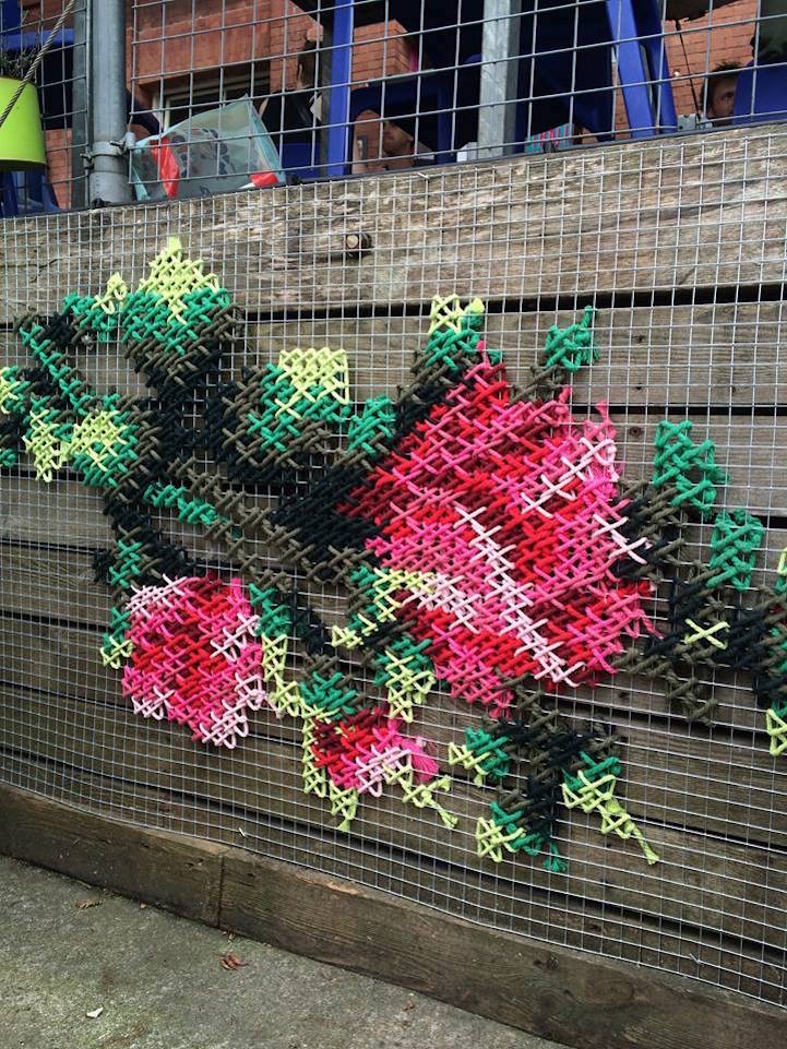Rodrigo’nun sokak sanatına yeni, yaratıcı ve estetik bir soluk getiren, tel örgülere geleneksel yöntemle diktiği nakışlar iç dekorasyonda, set dekoru olarak ya da pencerelerde de kullanılabiliyor.
