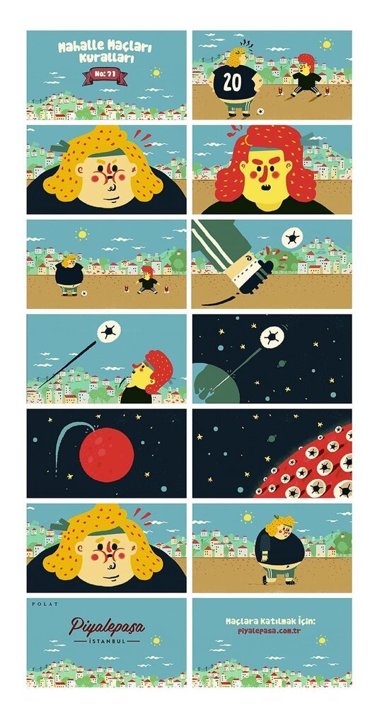 Kaleden kaleye gol yok, duvarken seken gol olmaz, baraj için 3 adım sayılır, atan alır, pis burun yok ve niceleri oyunu daha eğlenceli kılan detayları oluşturuyor. Murat Kalkvan‘ın Tribal Worldwide İstanbul ile birlikte Piyalepaşa için hazırladığı illüstrasyonlar da tam olarak o dönemi bir kez daha gözümüzde canlandırmamızı sağlıyor. Minik bir zaman tüneline girerken tüm mahalle maçı kurallarını da yeniden hatırlıyoruz.