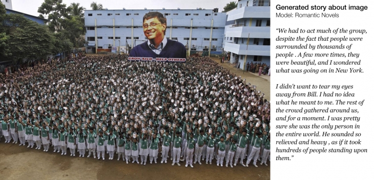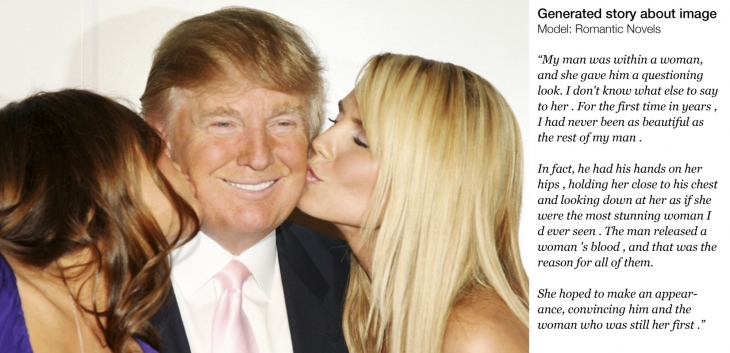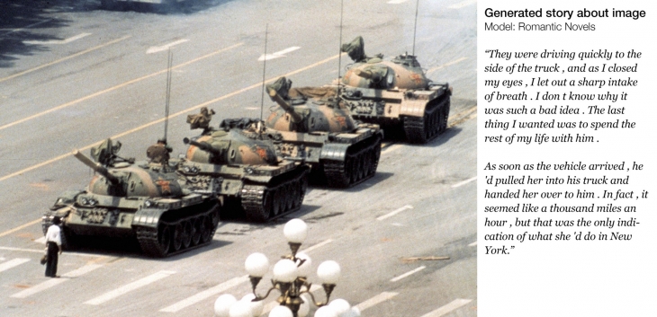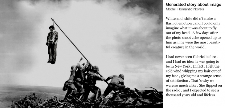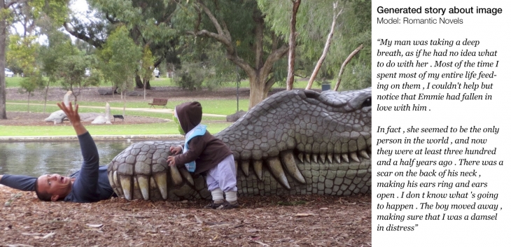 Yapay zeka araştırmacısı samim, yeni yayınladığı araştırmasında tekrar eden yapan ağların (recurrent neural network, RNN) dinamiklerini kullanarak romantizm konulu romanları tarıyor ve cümle yapılarını ezberliyor. RNN durumu analiz ederek koşullara göre ya romanlardan bir pasaj kullanıyor veya pas geçiyor. Ardından Microsoft Common Objects in Context üzerinden analiz yaparak görsel ve metin üzerinde bağ kuruyor ve birleştiriyor. Bu eğitim tekrar ederken de sürekli olarak yeni görseller üzerinde çalışıyor.