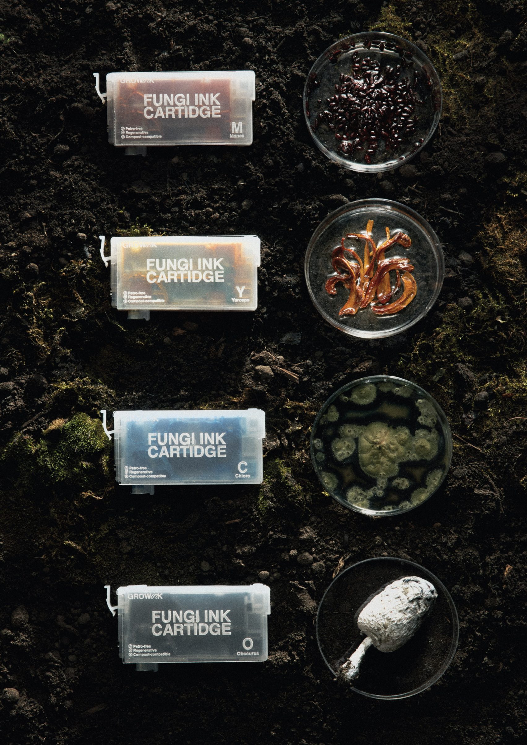 Central Saint Martins (İngiltere) mezunu tasarımcı Peerasin Punxh Hutapheat, petrol bazlı boyaların yerine mantar pigmentlerini kullanan “Growink” isimli yenilikçi bir biyomürekkep projesine imza attı. Tasarımcının amacı, “yaşamla baskı yapabilen” sürdürülebilir bir sistem oluşturmak.
