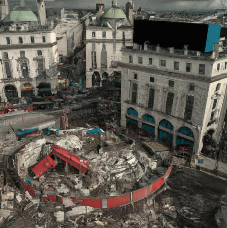 ‘AI Aid’ adlı çalışmanın sonucunda ortaya çıkan görsellerde, Richter ölçeğine göre 7,8’e ulaşan bir depremin İngiltere’de yaratacağı olası tahribat son derece gerçekçi bir şekilde gösteriliyor. Yapay zekânın oluşturduğu görüntülerde Trafalgar Meydanı, Piccadilly Circus, St Paul Katedrali, Manchester John Rylands Kütüphanesi ve The Birmingham Bull Ring gibi mekanlar deprem sonrasındaki yıkılmış halleriyle canlandırılıyor.