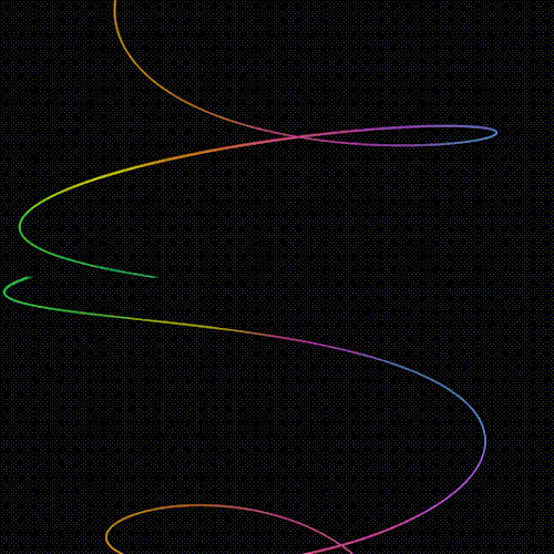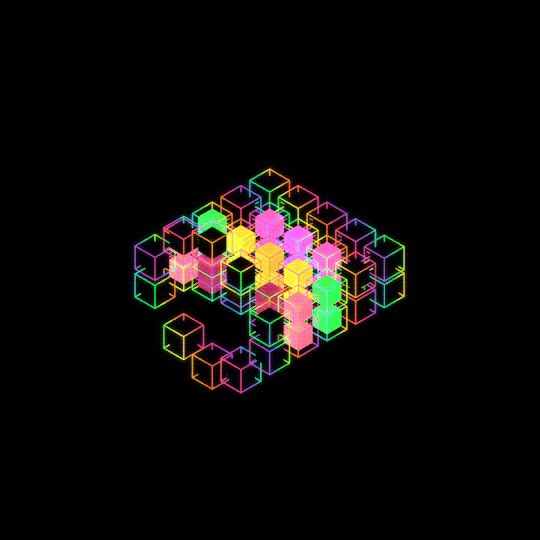 Tasarımcının GIF’lerinin tek özelliği teknikolor değil. Siyahtan beslenerek yarattığı katı arka plan sayesinde tasarımcı renk geçişlerinin hareketini daha da vurgulayabiliyor. GIF’ler sanki bir solucan deliğinden geçiyorsunuz ve o sırada o deliğin bağlı olduğu diğer evrenlerdeki ışık kırılmaları size görünüyor gibi. Böylece renklerden patlayan, büküm yapan ve parıldayan hareketli elemanlar üretiyor.