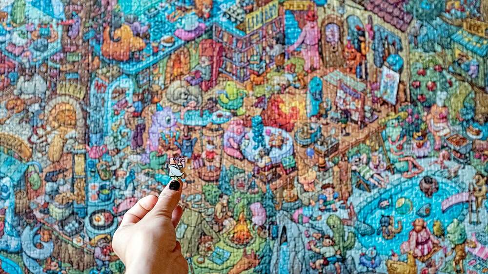 Marija Tiurina çok üretken ve her yaptığı işle dikkatleri çeken bir sanatçı. Sulu boya konusunda usta olan sanatçı, yeteneğini sürekli yeni şeyler deneyerek taçlandırıyor. En son Stereogramos adını verdiği stereoskopik sulu boya GIF’lerine yer vermiştik. Salgının başlarında, farklı Instagram kullanıcılarının hatıralarından oluşturduğu The Lockdown Project’e de yer vermiştik. Daha önce ise meyve sebzelerden türettiği karakterleri ve Londra’daki sokak yaşamını masalsı bir şekilde anlatan Mind the Gap projesiyle de ses getirmişti. Litvanya’da doğan ve İngiltere’de yaşamını sürdüren illüstratör, bu defa yapboza dönüşen nefis bir illüstrasyonuyla karşımızda.