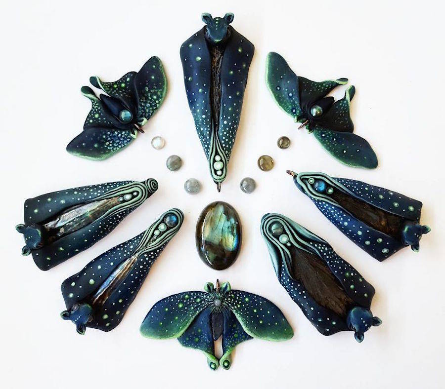 Myers; kil, tahta, deri, kuvars, deniz kabuğu, kemik, bambu gibi doğal materyalleri kullanarak masallardan fırlamış perileri, tek gözlü canavarları ve cüceleri anımsatan kolye uçları tasarlıyor. Myers’ın birbirinden büyüleyici tasarımlarını Etsy’deki ElementalUrchin adındaki dükkanında bulabilirsiniz.