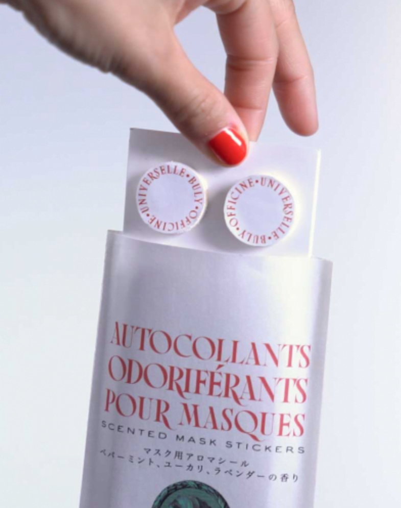 Yüz maskenizi tazelemek için, dış tarafına bir çıkartma yapıştırmanız yeterli. Officine Universelle Buly’nin açıklamalarına göre çıkartmanın etkisi genellikle 3-4 saat sürüyor. Bu, “maskeme istediğim kokuyu sıkarım” diyenleri de aydınlatacak bir açıklama. Herhangi bir koku maskenizden kısa sürede uçup gidebilir. Bu çıkartmalarsa daha uzun süreli bir etki yaparak fark yaratıyor.