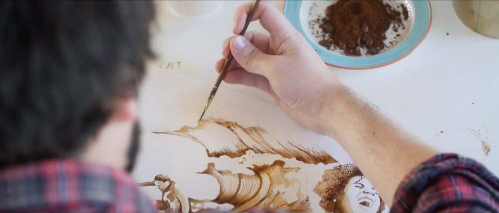 İllüstrasyonlarda mürekkep yerine kahve çekirdekleri kullanılıyor