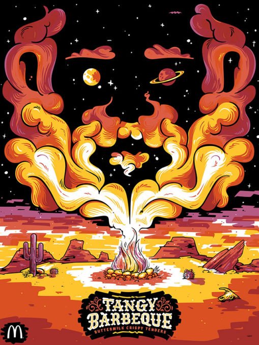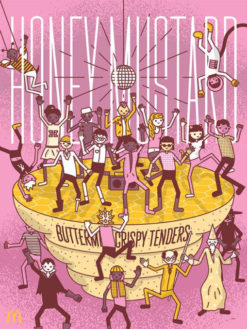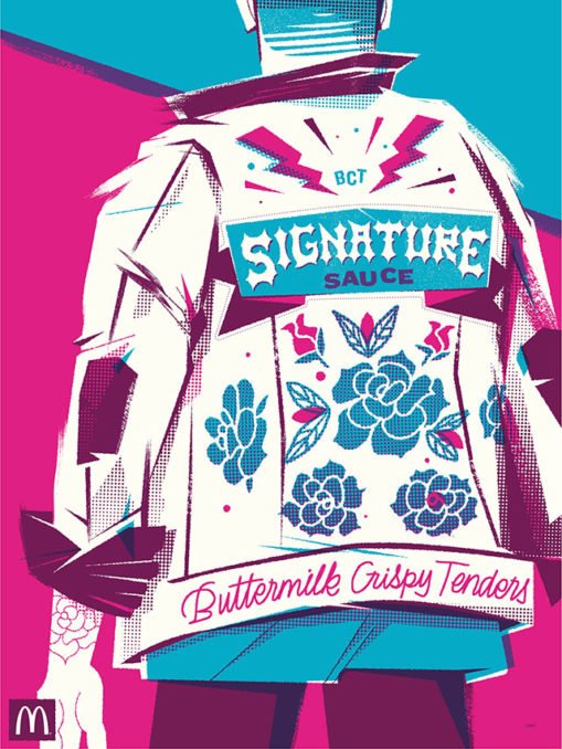 McDonald’s sınırlı üretim illüstrasyon posterlerin son yıllarda yükseldiğini ve oyun, müzik, TV, sinema gibi alanlarda insanların koleksiyoncu yanlarına da seslenerek hayranlığını ifade etmesinin bir yolu olduğunu belirtiyor. McDonald’s’ın posterleri de insanın McDonald’s’ı sevmese bile biriktirmek isteyeceği türden. Kaldı ki McDonald’s’ın soslarının da takıntılı fanları olduğu, atıyorum, “Honey Mustard olmazsa yemem.” türünde takipçileri olduğu bir gerçek. Kaldı ki nugget-vari bir ürün olan eski Chicken Selects’in de meraklısı çok, dolayısıyla bu yeni ürünün heyecan yaratacağı kesin. Bu anlamda popüler kültürün bir parçası olan sosları tanıtarak dolaylı yoldan yeni ürününü duyuran McDonald’s’ın yine bir popüler kültür malzemesi olan posterleri kullanması gayet mantıklı.