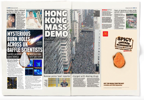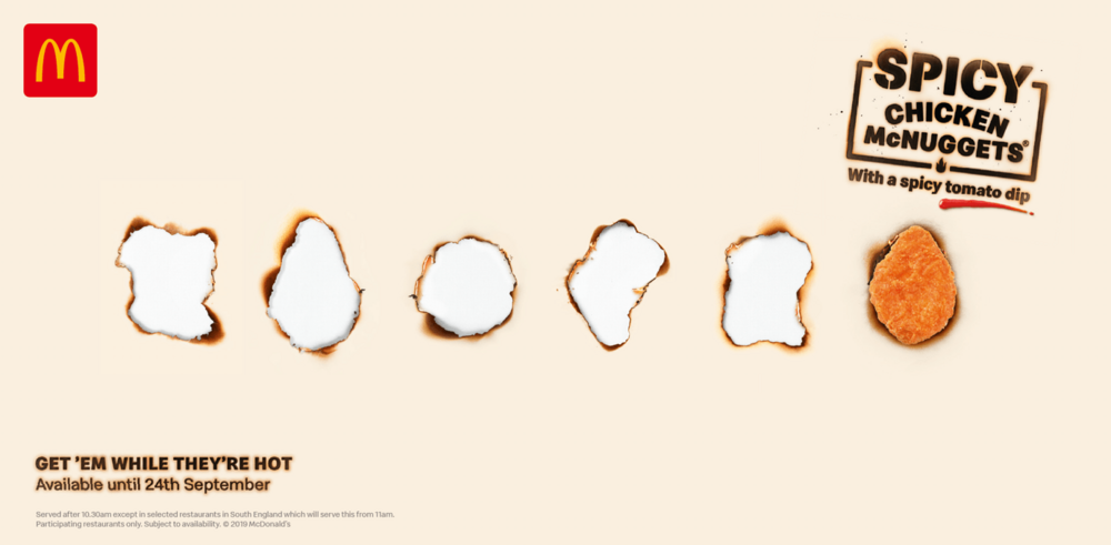 Kampanya Facebook, Instagram ve Twitter gibi sosyal medya platformlarının yanı sıra geleneksel basılı mecralarda da yer alıyor. Ajans, gazeteler için hazırladığı eğlenceli ürün tanıtımında birden fazla sayfada ürünün tanıtımı gerçekleştiriyor. İlk sayfada Spicy Chicken Mcnugget bulunurken diğer sayfalardaki reklamlarda ürün sıcaklığından dolayı delinmiş sayfa delinmiş olarak gösteriliyor. McDonald’s ayrıca Snapchat filtresi de yarattı. Filtre sayesinde kullanıcıların yüzleri ateş üfleyen Spicy Chicken Mcnugget’lara dönüşüyor.