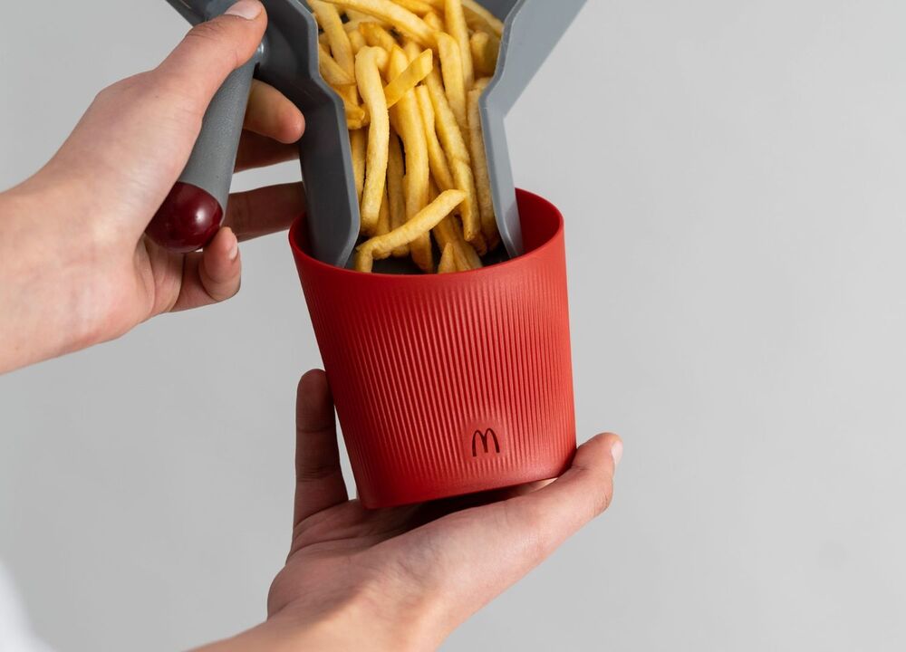 McDonald’s Fransa, Fransız tasarım stüdyosu Elium Studio ile iş birliği yaparak yeniden kullanılabilir bir yemek takımı üretti. Fast-food devinin alışıldık plastik bardak ve karton patates kızartması ambalajı gibi tek kullanımlık ürünlerine alternatif olarak geliştirilen tasarımlar, Fransa Cumhurbaşkanı Emmanuel Macron’un Twitter hesabından yaptığı övgü dolu paylaşımın ardından sosyal medya ve forumlarda viral hale geldi.