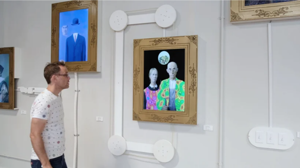 Yerleştirme Norman Rockwell ve Grant Wood gibi Amerikalı sanatçılar ve Hollandalı post-empresyonist ressam Vincent Van Gogh da dahil beş ünlü sanatçının eserlerini içeriyor.
