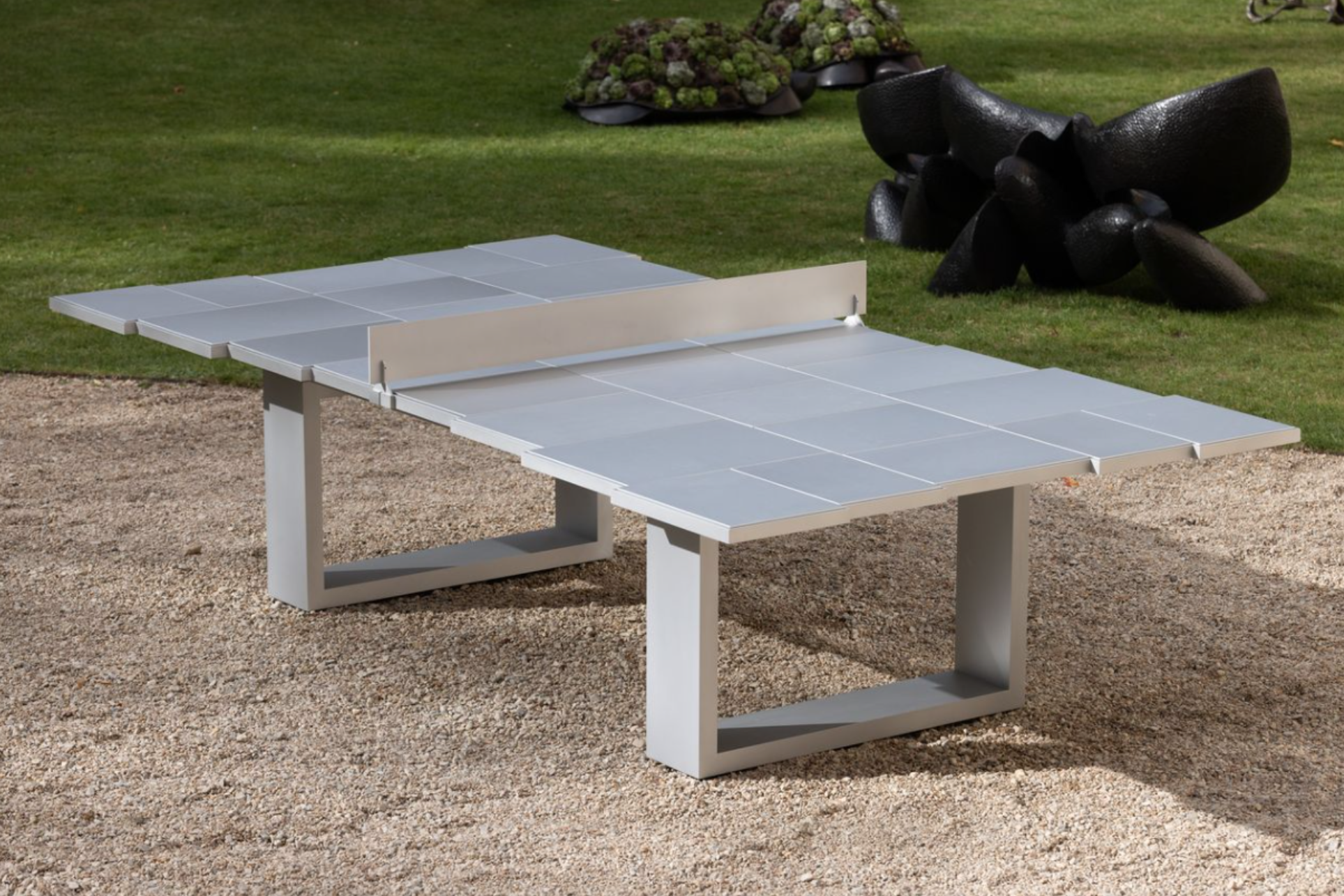 Los Angeles merkezli sanatçı ve tasarımcı James de Wulf, geçtiğimiz ay Design Miami.Paris tasarım fuarının açık hava bahçesinde sıra dışı bir çalışmasını sergiledi. İlk bakışta kenarları girintili çıkıntılı, güneşte parlayan metalik yüzeyiyle sade görünen bu alüminyum pinpon masası, top çarptığı anda gerçek kimliğini açığa vuruyor. Resonating Ping Pong Table, Song No. 1 adlı proje, oyunu fiziksel etkileşim ve sesle birleştiren yaratıcı bir düzenekten oluşuyor.