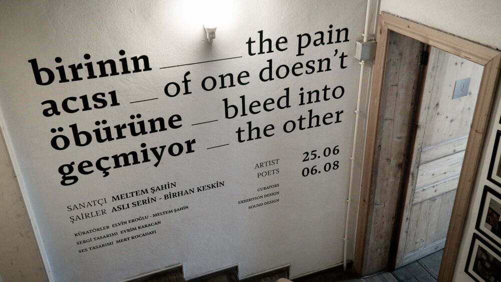 “Birinin Acısı Öbürüne Geçmiyor” 25 Haziran’da Kıraathane İstanbul’da açıldı. Küratörlüğünü Elvin Eroğlu ve Meltem Şahin’in ortak üstlendiği sergide sergi tasarımını Evrim Karacan, ses tasarımını Mert Kocadayı gerçekleştirdi. Sergi, 6 Ağustos 2021 tarihlerine kadar Kıraathane İstanbul Edebiyat Evi’nde ziyarete açık olacak.