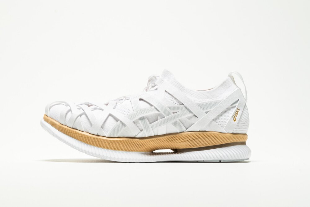 Metaride AMU, ayak bileklerinin aşırı bükülmesini önlemek ve enerji tüketimini azaltmak için ayak parmaklarına doğru kıvrılan ASICS’in klasik Metaride modeline dayanıyor. Taba renkli orta taban yapıldığı malzemenin doğal rengini taşıyor. Normalde bu tabanlar boyanıyor ama Kuma’nın isteği üzerine bu tasarımda boyanmamış.