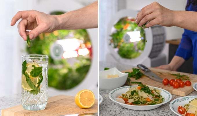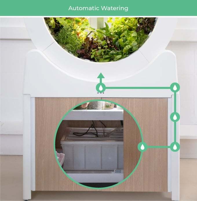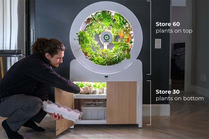 Aynı anda 90 meyve ve sebze yetiştirebileceğiniz OGarden Smart, 134,6 x 73,65 x 38,1 cm boyutunda. Dönen gövde 60 ürün, alt taraftaki raf ise 30 ürün alabilecek kapasitede. Dönebilen yuvarlak gövdesinin merkezi, güneş ışığının görevini üstlenen enerji tasarruflu LED ışıkla donatılmış. Mevsim şartlarından bağımsız olarak; yapraklı yeşillikler, kiraz, domates, biber, çilek ve yenilebilir çiçekler dahil pek çok şeyi yetiştirmeyi mümkün kılıyor. Böylece tarım ilaçları ve diğer zararlı kimyasalları işin içine dahil etmeden iç rahatlığıyla tüketebileceğiniz meyve ve sebzeleriniz oluyor. Üstelik de bunu yapmak fazla çaba ve zaman gerektirmiyor.