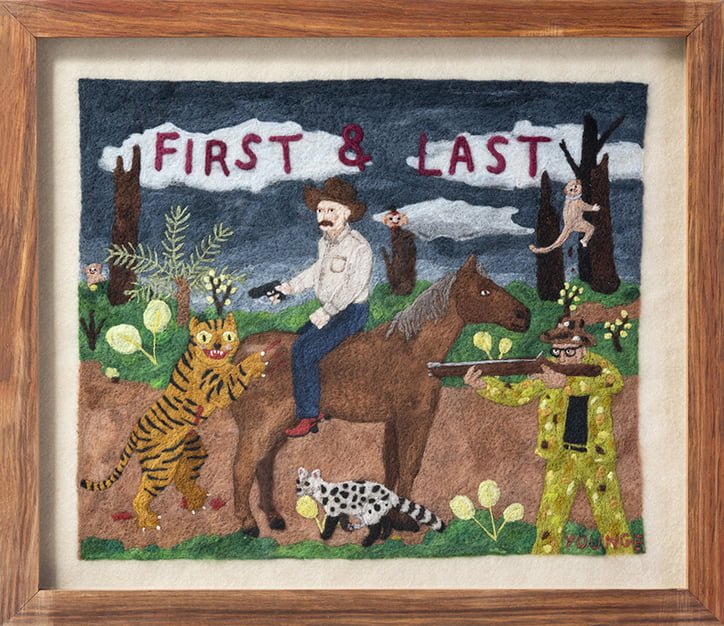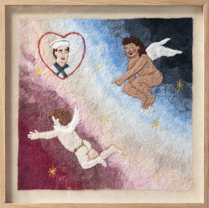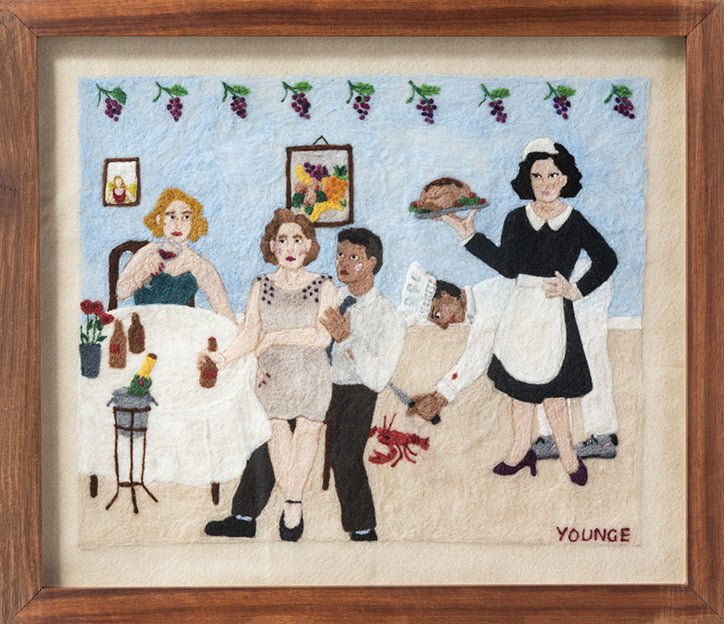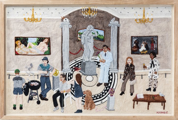 Keçe, günümüzün en gözde sanat malzemelerinden biri. Paolo Del Toro’nun dev keçe büstleri, Sabri Tunca’nın fantastik keçe şapkaları, Elin Thomas’ın keçe ve tığ ile yarattığı küf ve bakteri kolonileri bu malzemenin nasıl farklı şekillerde kullanılabileceğini gösteren etkileyici örneklerdendi. Michaela Younge da keçeyi adeta yağlı boya gibi büyük bir ustalıkla kullanabilen bir sanatçı.