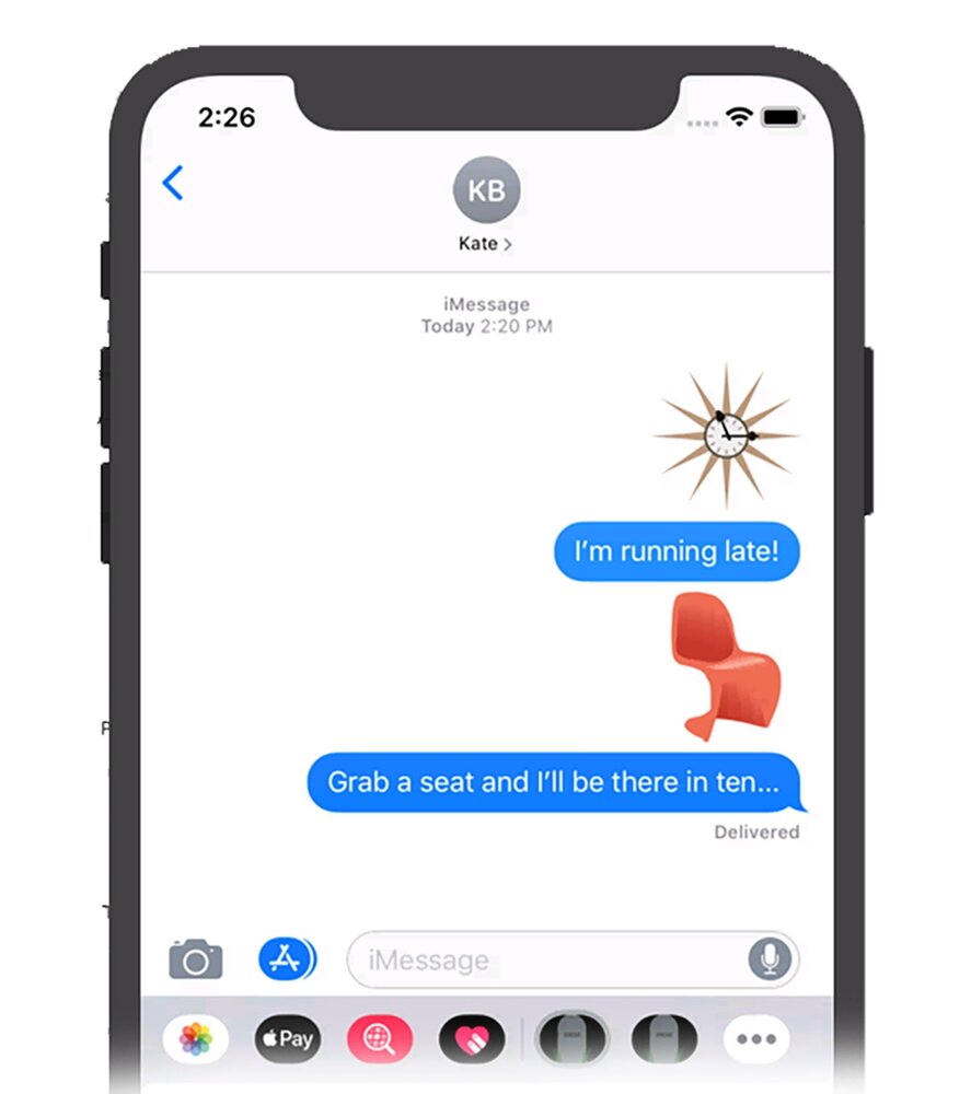 Emoji setinde Charles ve Ray Eames çiftinin tasarımı ahşap kuş Eames House Bird, Eyfel sandalye Eames Eiffel Chair ve La Chaise sandalye yer alıyor. Eero Saarinen’in ünlü masa tasarımı Tulip Table, Eero Aarnio’nun içi kırmızı dışı beyaz ikonik Ball Chair’i de en favori emojilerden. Hans Jørgensen Wegner’in 1949’da Carl Hansen & Son için yarattığı Wegner Wishbone Chair’i, George Nelson’ın beyaz aydınlatma tasarımı Nelson Bubble Pendant Lamp ve ünlü duvar saati Sunburst Clock, Danimarkalı mobilya tasarımcısı Vernor Panton’ın Panton S-Chair adlı kıvrımlı sandalyesi ve Italian tasarımcı Gino Sarfatti’nin avizesi Sputnik Chandelier setin diğer parçalarından.