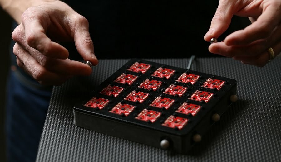 Yaklaşık 3 milimtere çapındaki boncuk şeklindeki mıknatıslar kasların üzerinde 3 santimetre arayla yerleştiriliyor. Mıknatıslar, bu mesafeden daha kısa aralıklarla yerleştirildiğinde birbirlerine doğru hareket etme eğiliminde oldukları için birbirlerine en fazla bu kadar yaklaştırılabiliyor.
