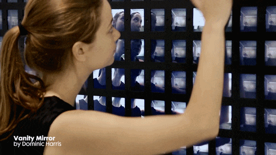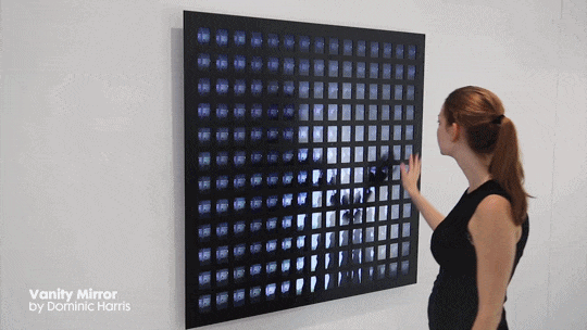 Farklı objelerin dijital altyapıyla desteklenerek aynaya dönüştüğüne daha önce şahit olmuştuk. Daniel Rozin, penguen veya yün gibi materyalleri kullanarak karşı tarafın hareketlerini kopyalayan ayna benzeri yerleştirmeler yapmıştı. Dominic Harris ise toplumsal ve kurgusal bir yapı ile 180’den fazla mikro ekran ve kamera ile karşısındaki insanın arkasında olan biteni farklı perspektiflerle görmesini sağlayan bir yerleştirme yaptı.