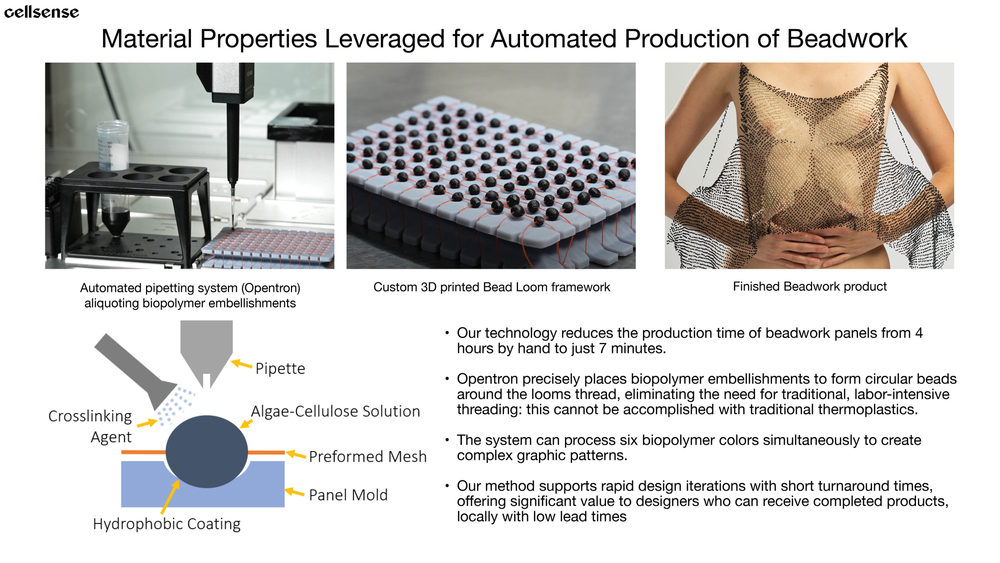 Tekstil ürünlerinde kullanılan süsleme boncuklarının çoğu, petrol türevi sentetik plastik ve reçineden yapılıyor. Bunlar daha sonra manuel olarak giysilere işleniyor. Bu boncuklu giysiler ömrünü tamamlayıp çöpe atıldıklarında, mikroplastik krizine katkıda bulunuyor. ABD’li bir ekip tarafından geliştirilen ödüllü tasarım projesi Cellsense, giysi süslemelerinde kullanılan plastik malzemeye sürdürülebilir bir alternatif sunuyor.