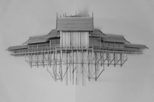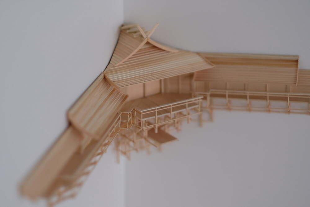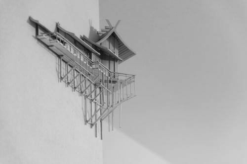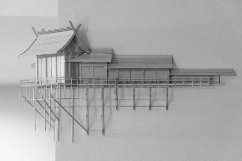 Mimar Naohiko Shimoda, genelde birer duvar heykelciği gibi görünen kaminadaları bir adım öteye taşımış ve gerçek mimari modeller gibi detaylı bir tasarım yapmış. Karmaşık bir temel ve çıtalı bir çatı ile tasarladığı bu ahşap yapılar , kapalı mekanın içinde bir köşeye yerleştirilmiş ve geleneği bozmadan duvara yüksek bir şekilde monte edilmiş.