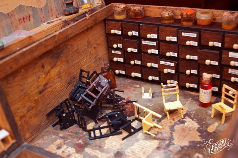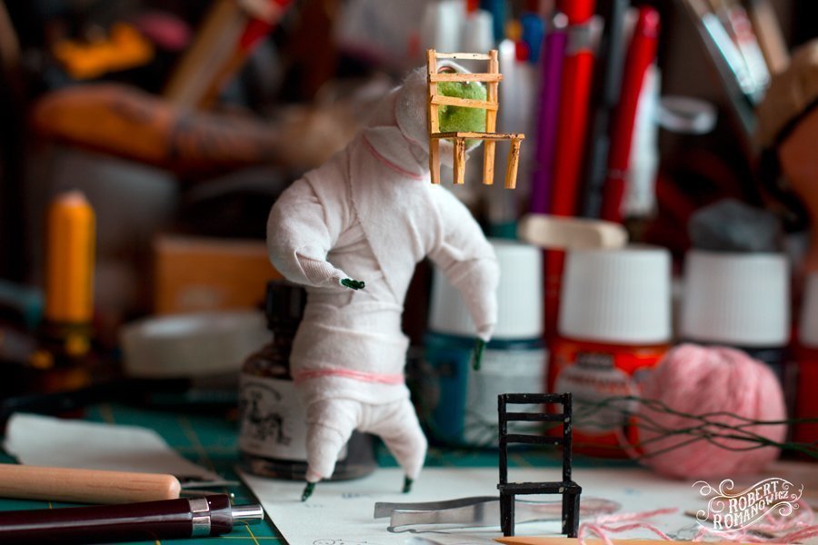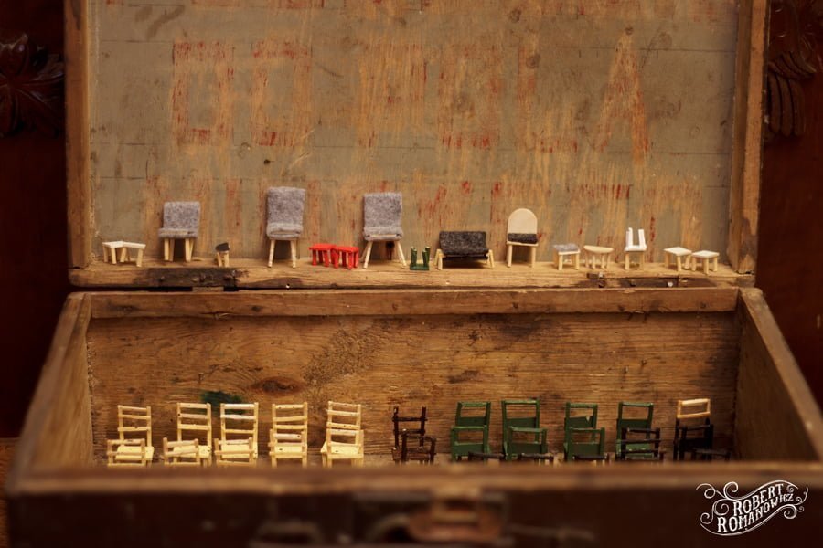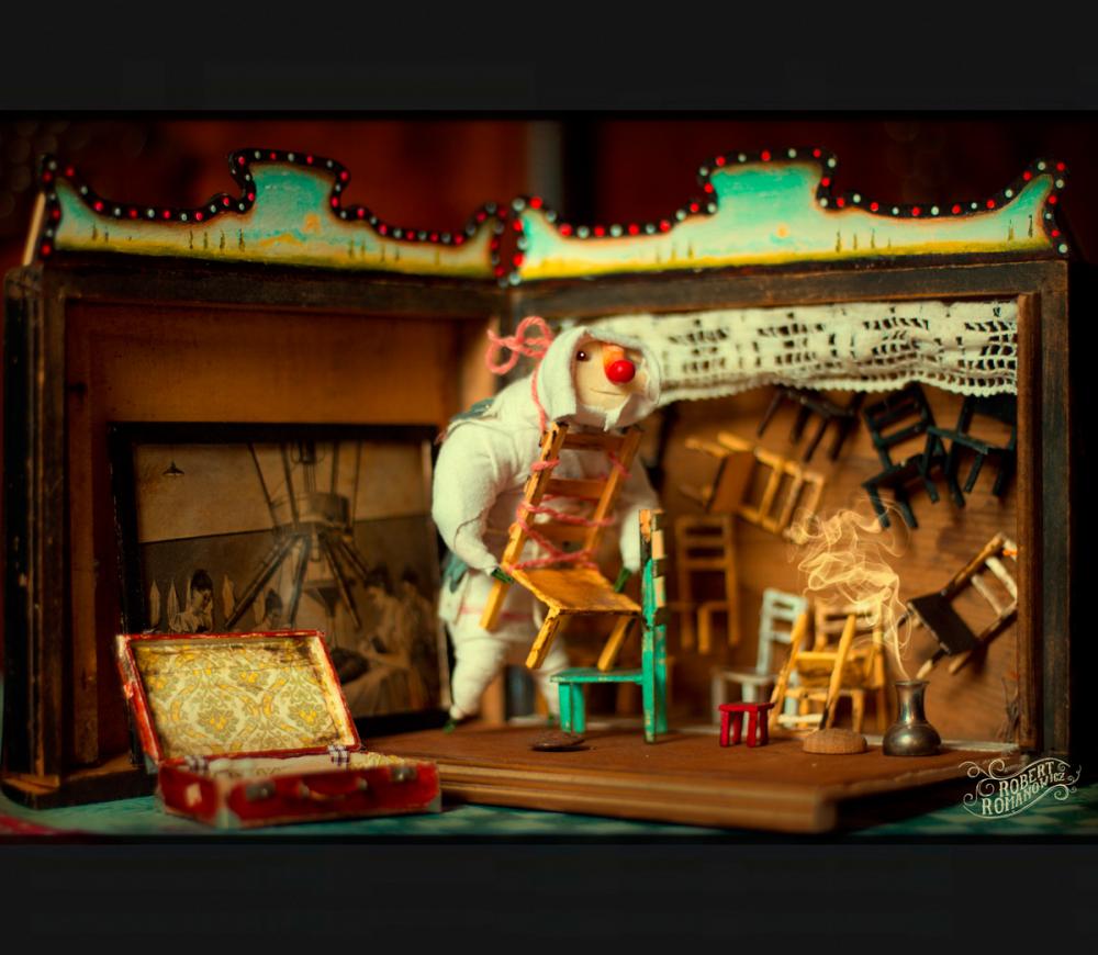 Polonyalı mimar Robert Romanowicz, illüstrasyonları ve el yapımı karakterleriyle insanı adeta büyülüyor. Yeni projesi Thief of Chairs (Sandalye Hırsızı) da Romanowicz’in bütün yeteneğini, sabrını ve hayal gücünü konuşturduğu bir minyatür sirk çalışması. Her bir detay o kadar sevimli ki, insan “keşke yakından görebilsem ve uzun uzun inceleyebilsem” hissine kapılıyor. Romanowicz’in 3 boyutlu çalışmaları, Joseph Cornell’in kutular içinde yarattığı asamblajlarının çocuksu versiyonları gibi. Romanowicz, minyatür sirk ile konulu bir animasyon filmi yaratıp yaratmayacağı hakkında ise herhangi bir açıklama yapmamış. Aşağıdaki stop-motion film yalnızca sirki genel olarak tanıtan bir demo niteliğinde.